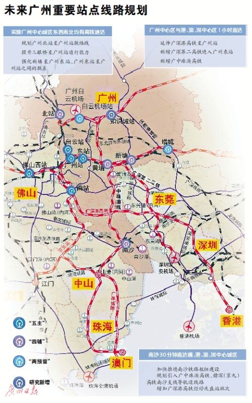 广州通往粤港澳各城市将