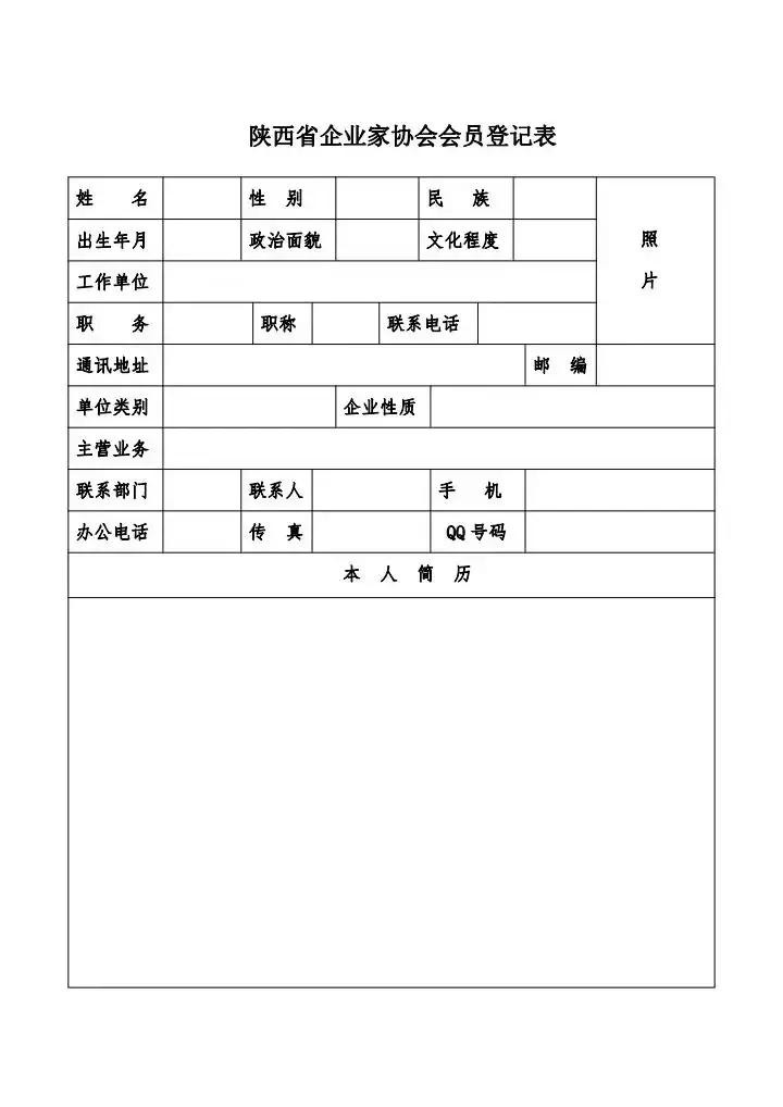 入会申请表电子版下载:(陕西省企业家协会官方网址: