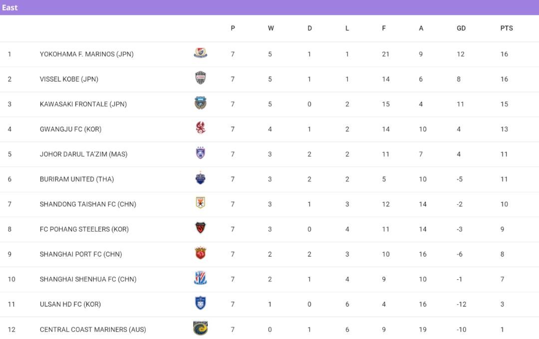 上海申花出线条件更苛刻——击败神户胜利船,他们积分可以达10分,需要山东泰山输球、浦项制铁和上海海港不胜这三个条件同时具备至少两个,他们才能以净胜球优势出线。