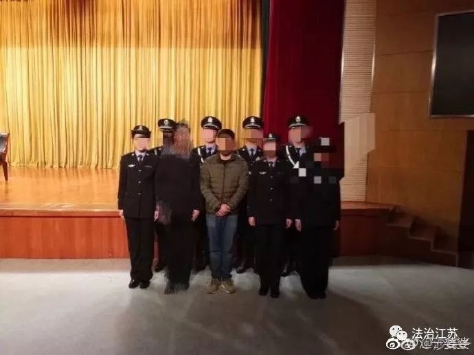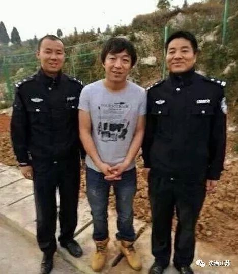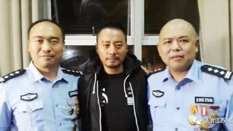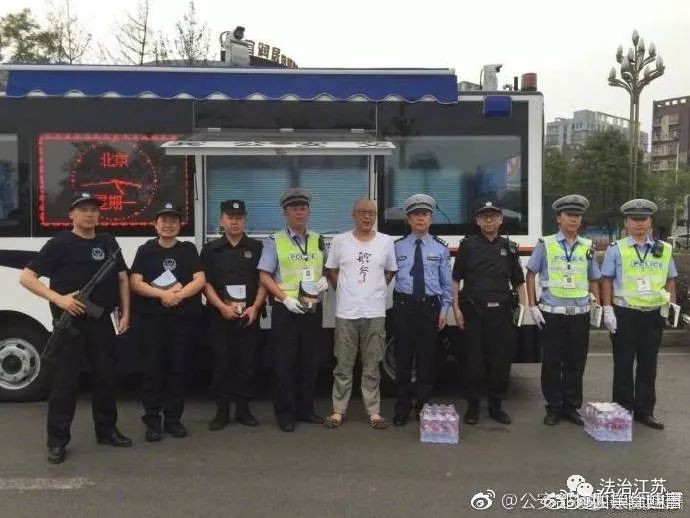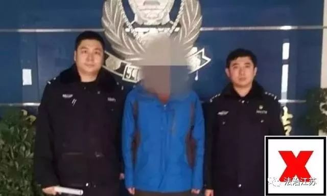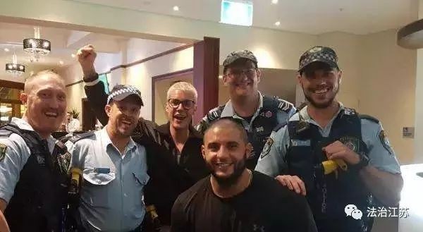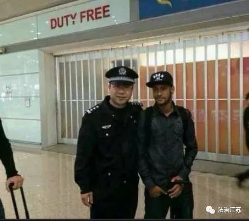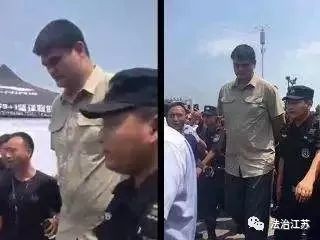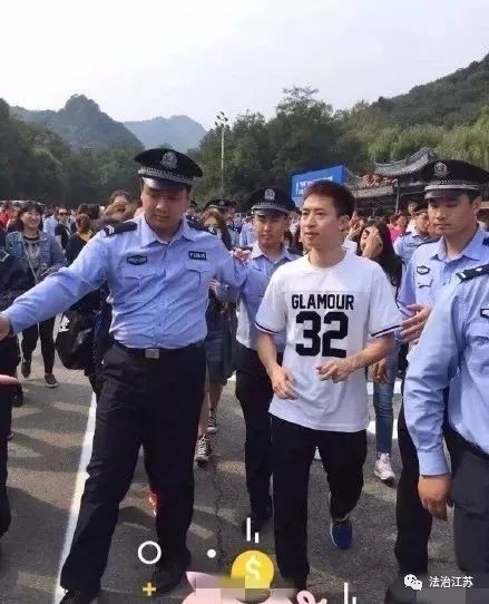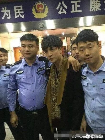 虽然不是正面的拍照,但由于是被警察夹在当中,依然很尴尬。