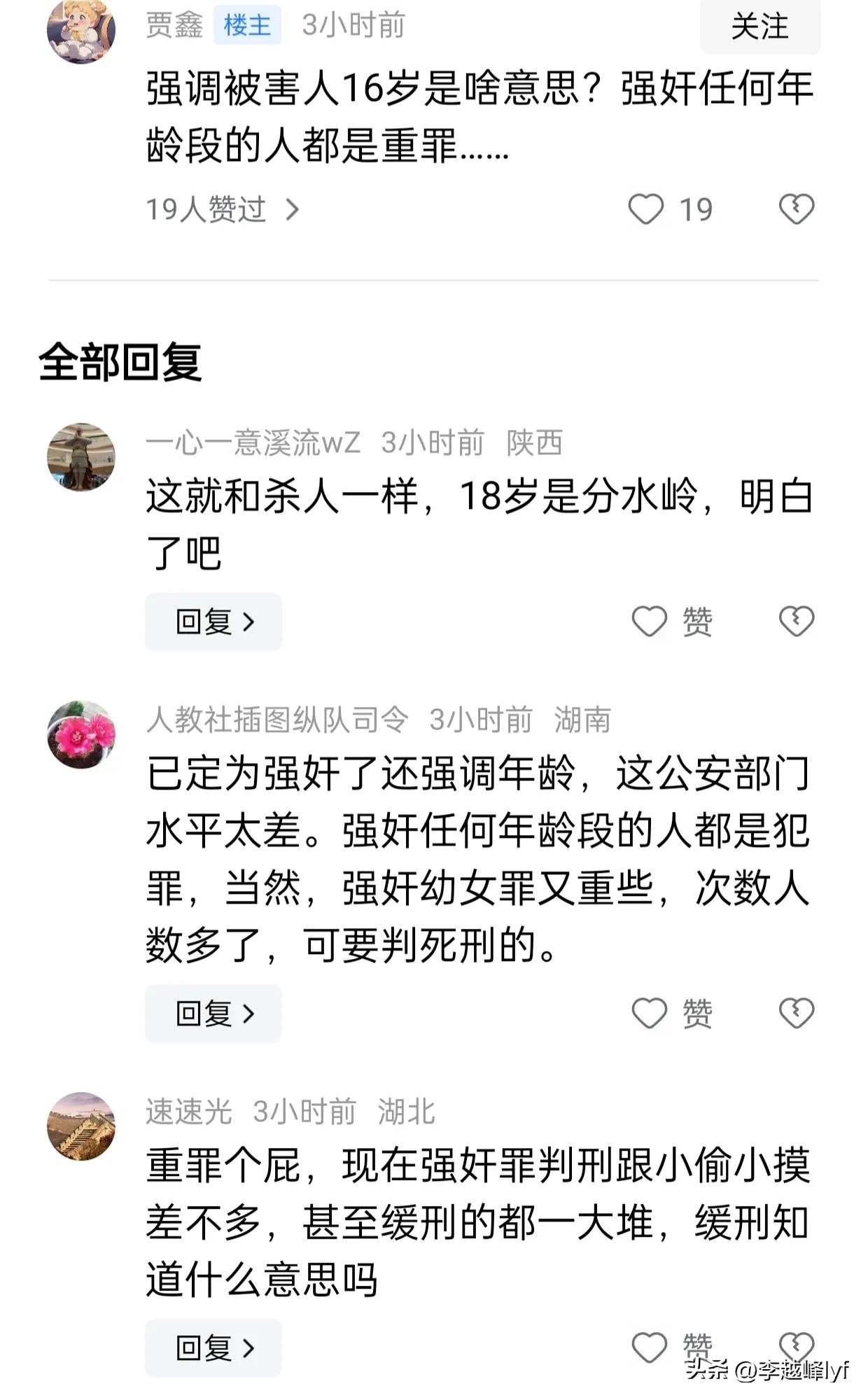 另外在警方的通报中,网友看到还专门强调了受害者被强奸的时候已经年满16周岁。