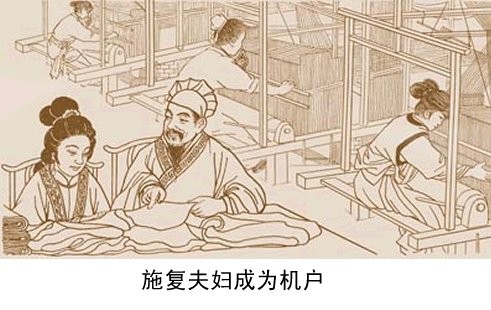 比较典型的是江南施夫妇的“机户出资,机工出力”的作坊,他们在苏州拥有两万多架机器来纺织。明清时期苏州和杭州是全国的丝织业中心。
