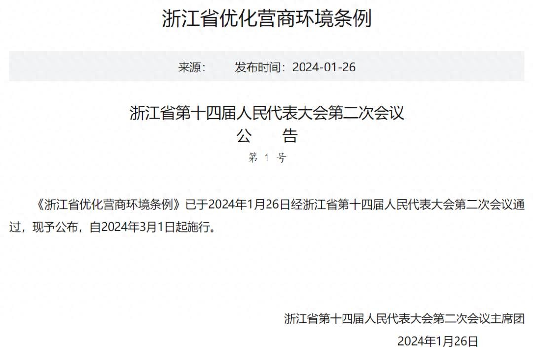 3月1日起,《浙江省优化营商环境条例》正式施行,将着重围绕市场管理、政务服务、要素支撑、数字赋能、创新支持、开放提升、人文生态、法治保障等方面对营商环境予以优化。
