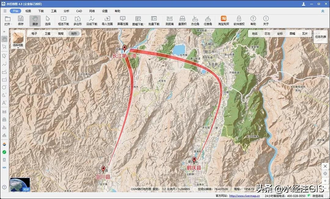 从地形图看,金沙江如果从剑川县南下,或者鹤庆县南下,最终都会汇入大理市周围的洱海水系,命运是并入澜沧江。