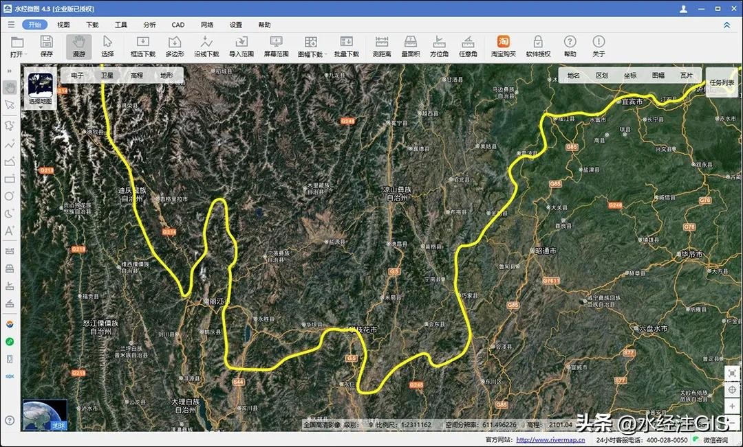 金沙江拐弯北上之后,又经历了一波三折,再次南下到了更靠南的地方,继而拐弯往东,又往东北。