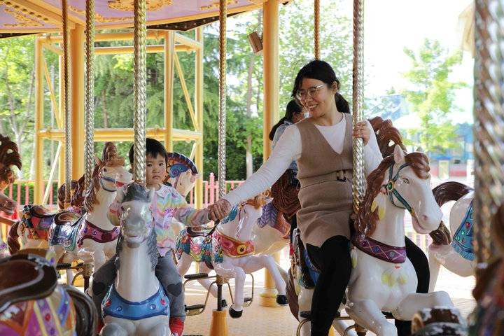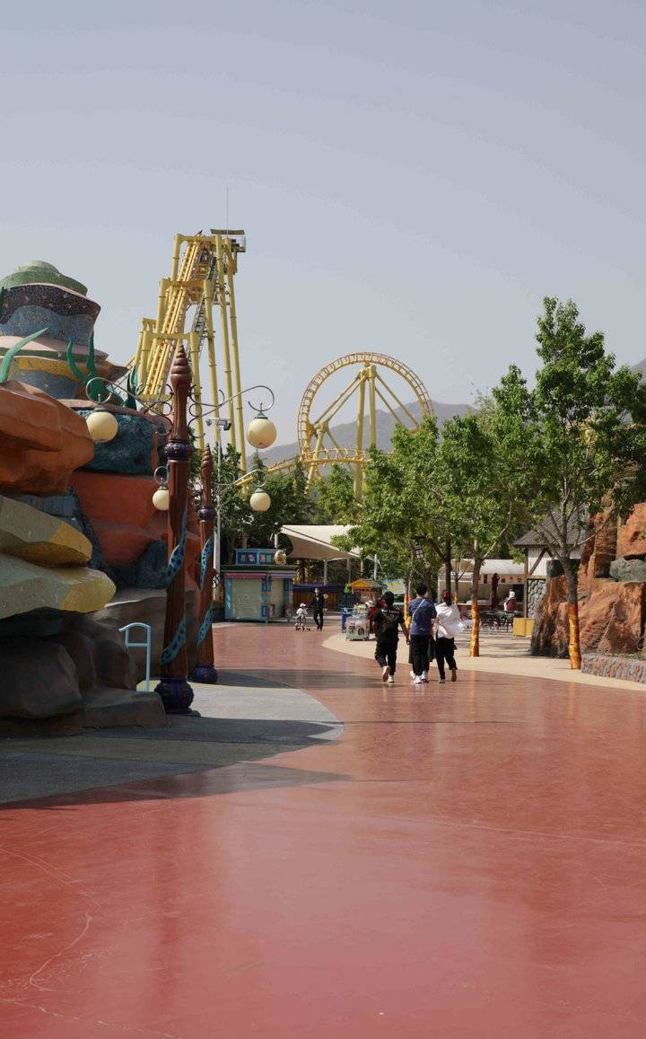 园区内还有一大片水面,游船在水面上飘移,园区内中外先进时尚的各种游乐设备和自然景观相映成趣,形成一动一静的效果,构成一幅人与自然和谐共生的完美画卷。