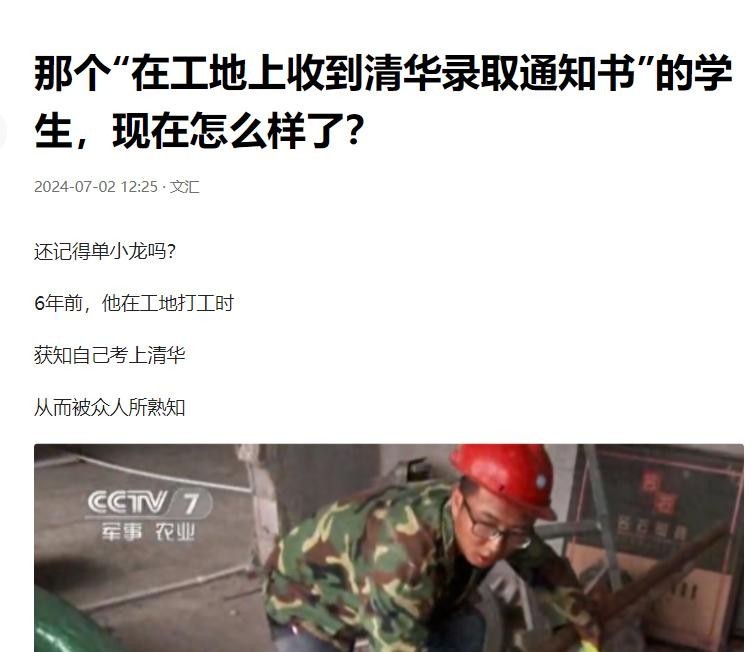 18年工地接清华通知书的单小龙,学没上完就入了海军,如今怎样了