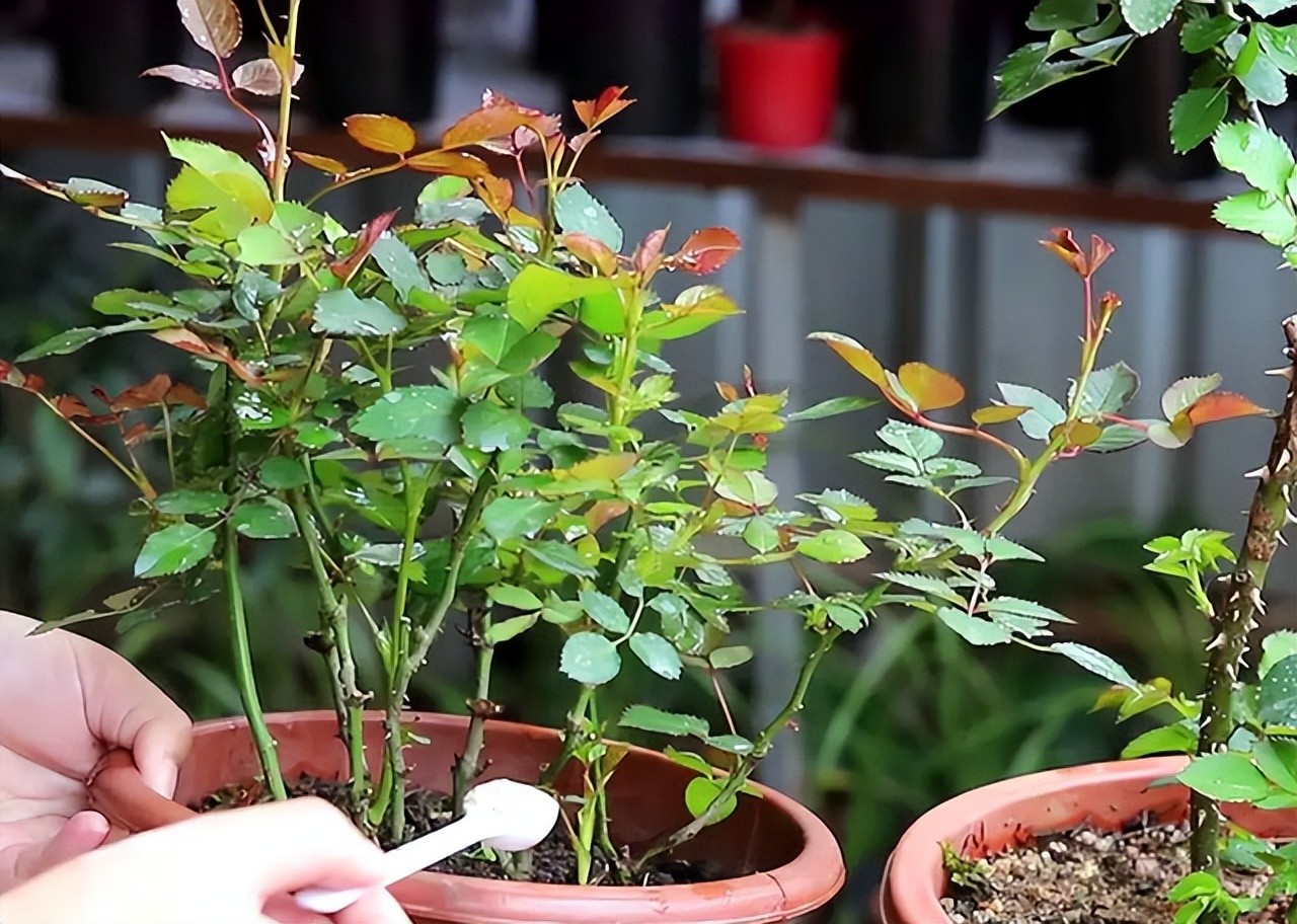 从初春月季刚开始冒嫩也,就要给它施一波肥料,促进它的生长,让它多生分枝。地栽的月季,两三个月就要施一次肥;盆栽的月季,换盆的时候要加底肥,平时还要勤追肥;过冬的时候还要给它埋一次冬肥。