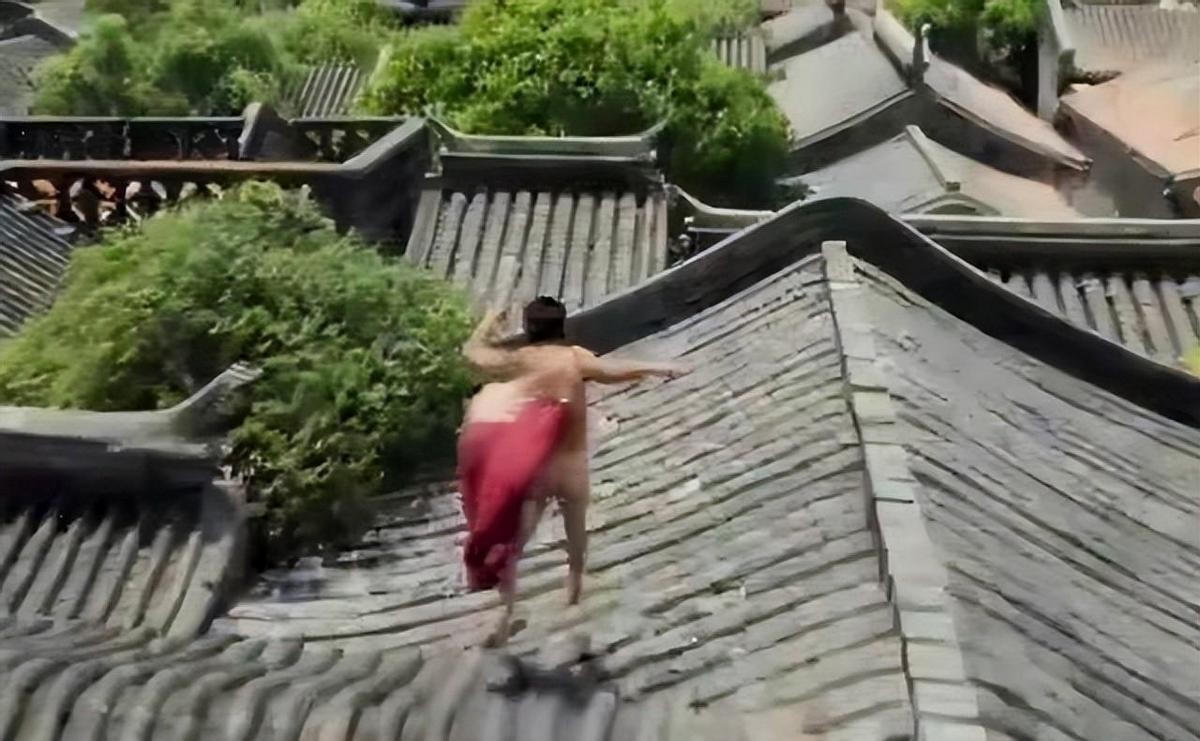 彭于晏在《邪不压正》中的另一场全裸戏是在屋顶奔跑。这场戏他需要全裸只披一件大衣,在屋顶上尽情奔跑。这对任何演员来说都是极大的考验,需要在工作人员和公众面前裸体演出。但是彭于晏无所畏惧,勇敢地完成了这场全裸演出。