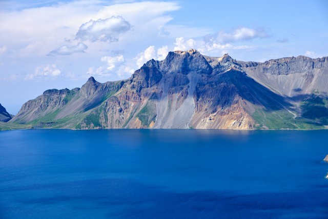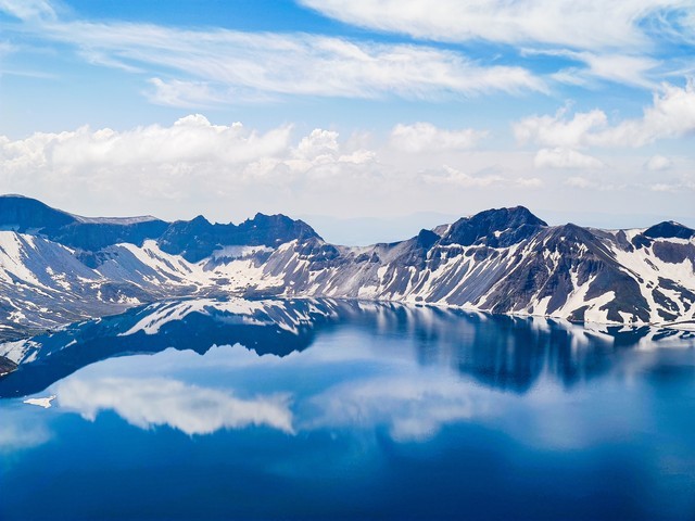 长白山天池位于吉林省东南部,是中国和朝鲜的界湖,也是中国最深的湖泊。湖面海拔2189米,湖面面积约9.82平方公里。长白山天池火山口形成于1200万年前的火山喷发,火山口积水成湖,形成了如今的天池。天池四周被16座山峰环绕,其中北面的白头山是最高峰,海拔2749米。天池湖水清澈碧绿,景色壮观。由于地处高纬度地区,长白山天池冬季漫长,每年有长达8个月的冰冻期。