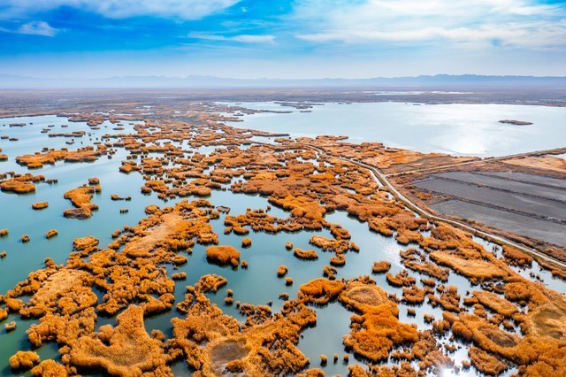 艾丁湖位于新疆吐鲁番市东南部,是中国陆地最低点,湖面海拔-154.31米。艾丁湖是一个咸水湖,湖面面积约为200平方公里。湖水主要来自北部的喀拉乌成河和南部的库木艾日克河。艾丁湖地处吐鲁番盆地,气候极度干旱,年降水量不足20毫米。湖区周围地貌复杂,包括沙漠、戈壁和盐沼泽。艾丁湖及其周边地区拥有丰富的矿物资源,包括盐、芒硝等。