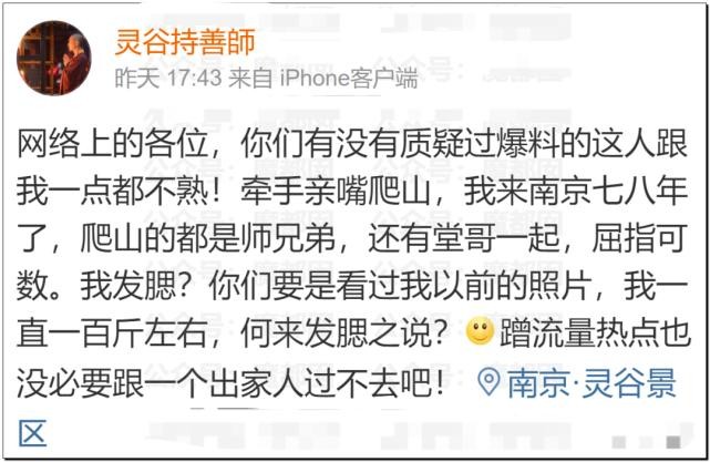 持善师父也被这荒唐的谣言惊到了,紧急发文在线辟谣: