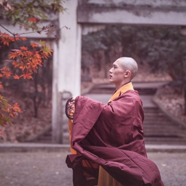 这位年轻法师名叫持善,这是他自己公布的一张近景照,很多女生都疯狂了,简直惊艳到无与伦比。