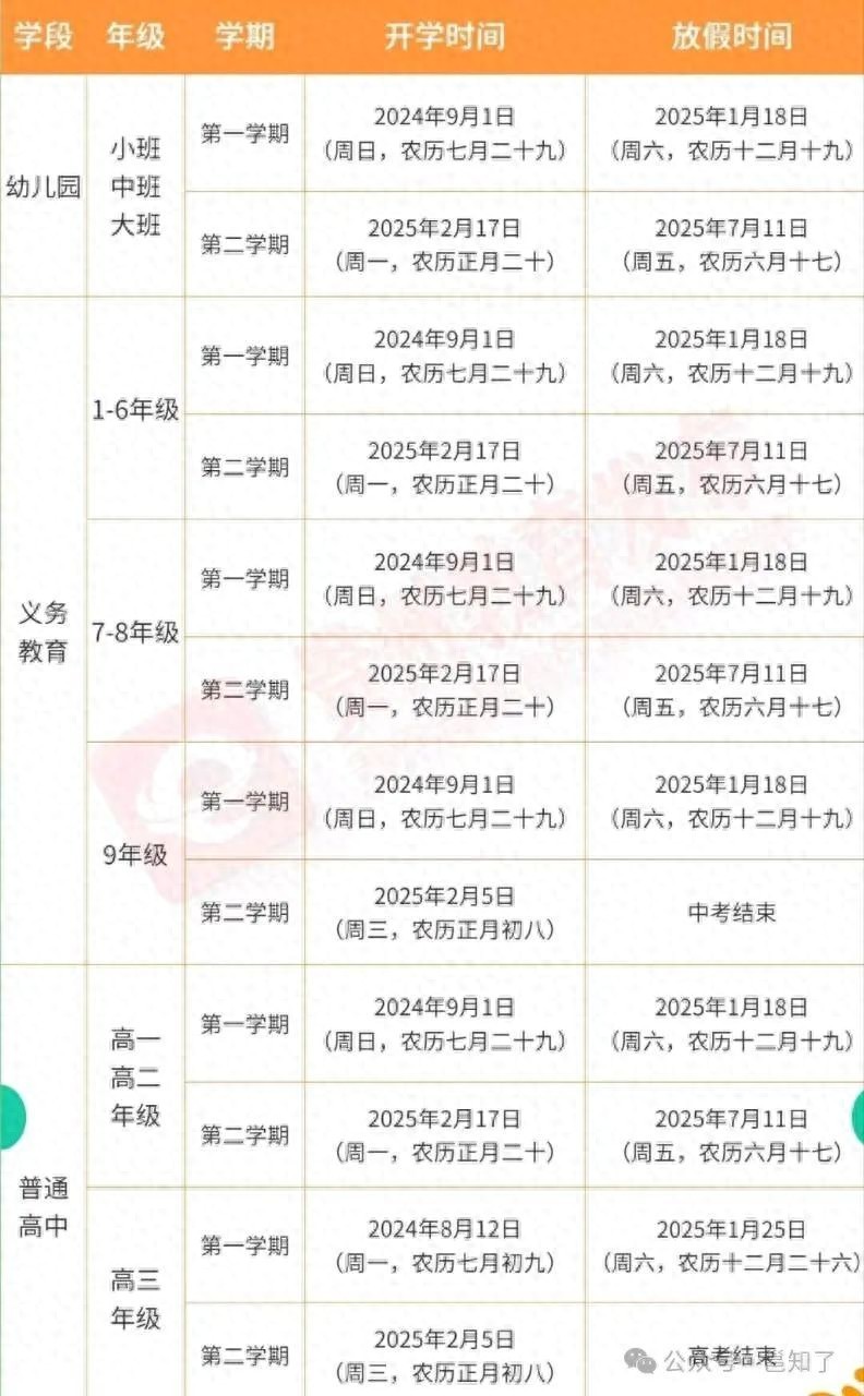 定了!全国中小学2025年春季开学时间→