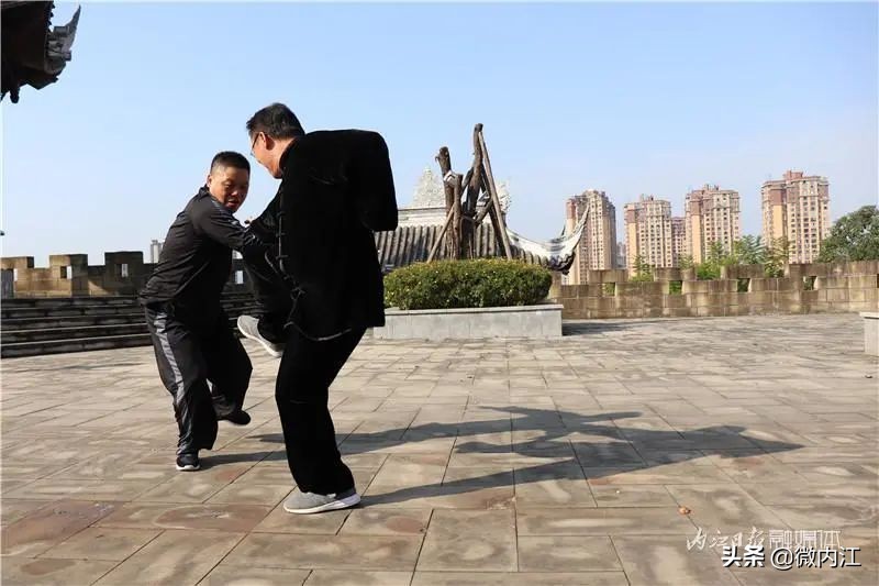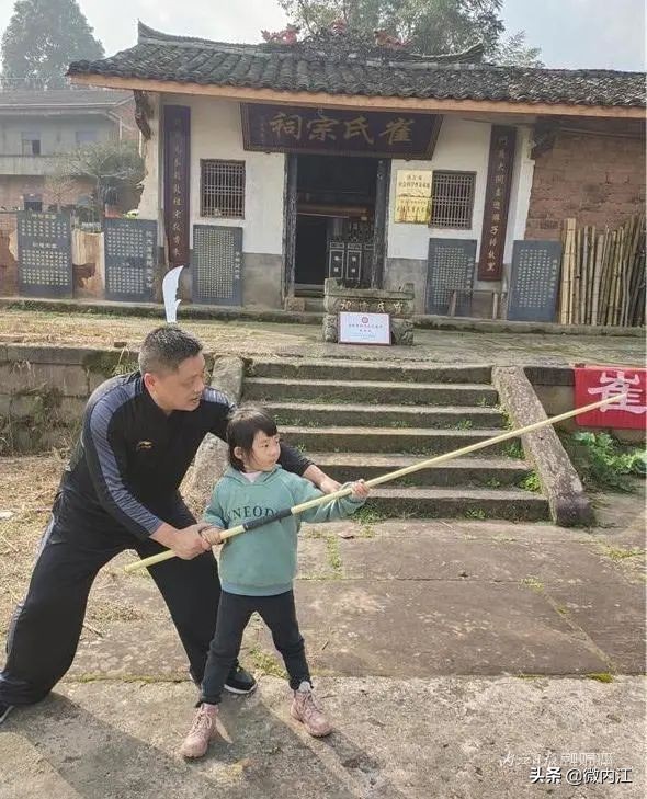 春暖花开,生机勃勃,正是强身健体的好时机。内江市威远县观英滩镇竹塘村4组的崔氏宗祠院坝,传来阵阵打斗声。内江市级非物质文化遗产崔家拳项目传承人崔俊伟和第七代弟子崔筱苑、崔嘉宜、崔小涵等正在练习武术。