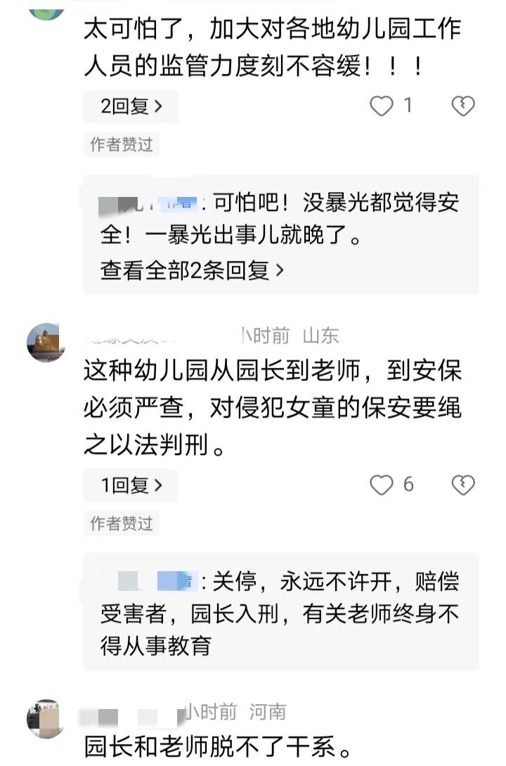 在社交媒体上,网友们对此事件发表了各种看法。一些人认为,保安的行为应被追责到底,并希望能尽快立法,制定更为严格的幼教行业标准,以杜绝类似事件的发生。