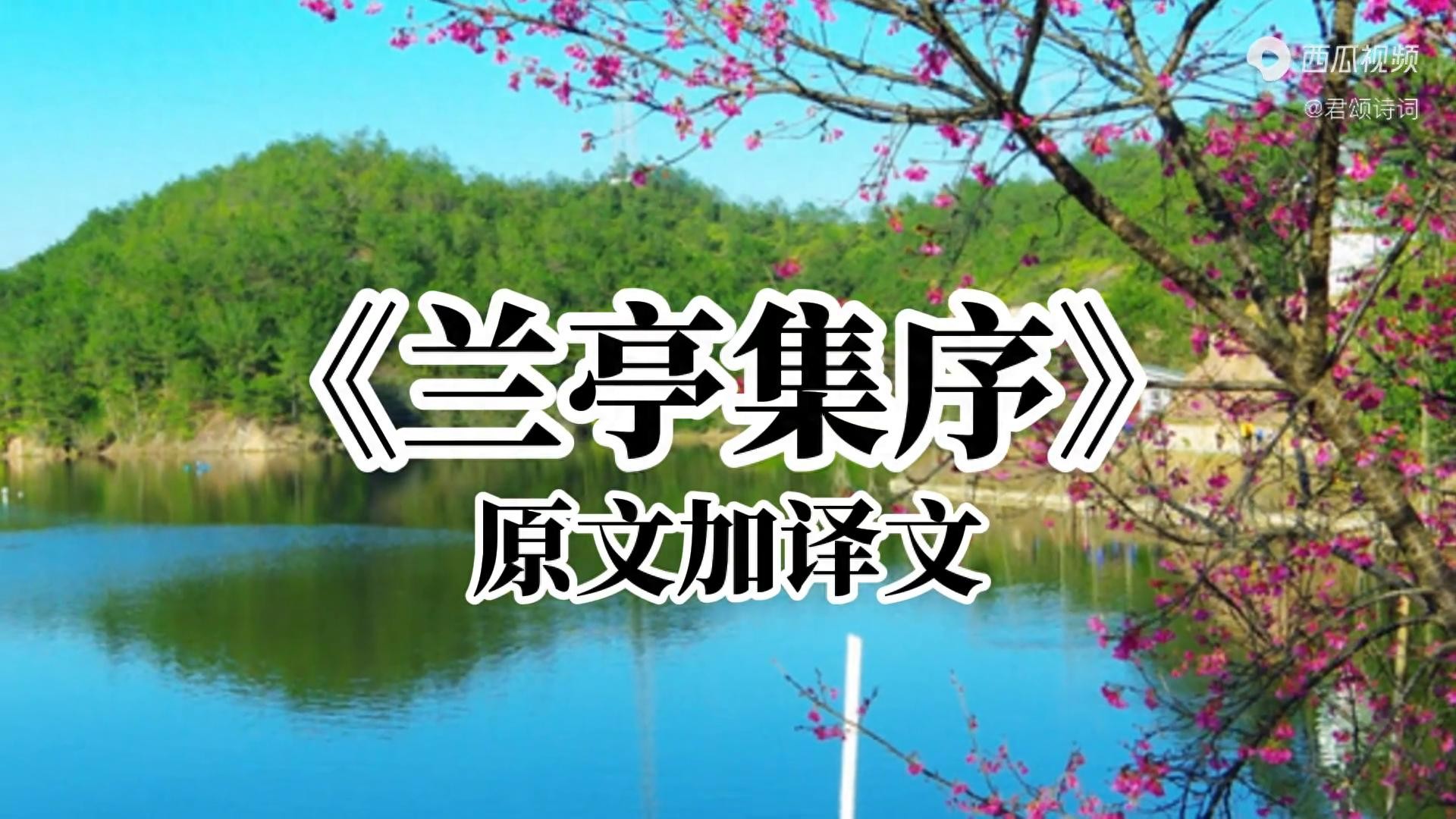 永和九年,时在癸丑之年三月上旬,我们会集在会稽郡山阴城的兰亭。为了做禊礼这件事,诸多的贤士能人都汇聚在这里,年长年少者都聚集在这里。兰亭这个地方有高峻的山峰,茂盛高密的树林和竹丛,又有清澈激荡的水流在亭子的左右辉映环绕。