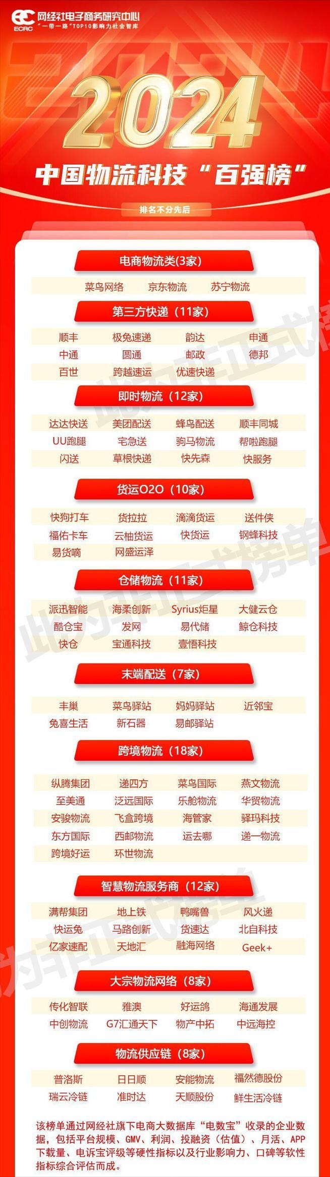 此外,报告还发布了《2024年物流科技“百强榜”》,包括: