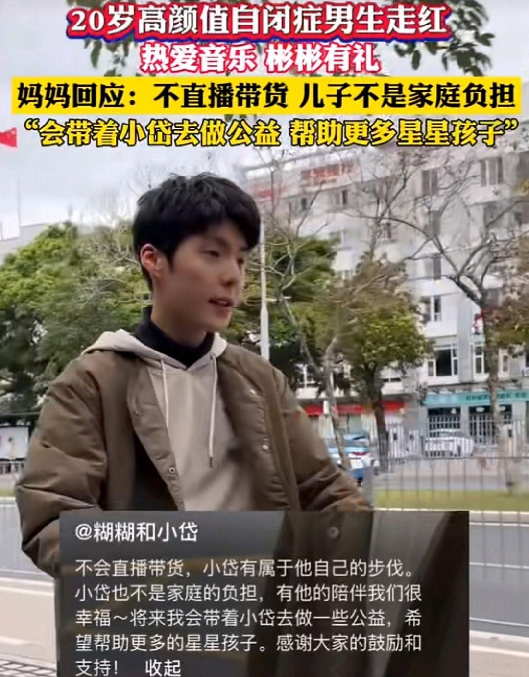 20岁高颜值自闭症男生火了!妈妈称不是家庭负担不会直播带货