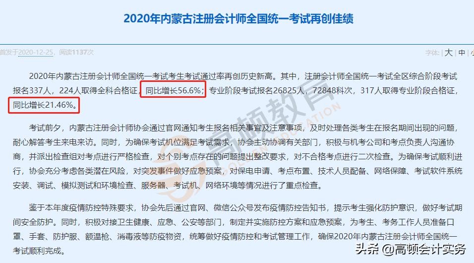 内蒙古:专业阶段考试通过率同比增长21.46%;综合阶段考试通过率同比增长56.6%