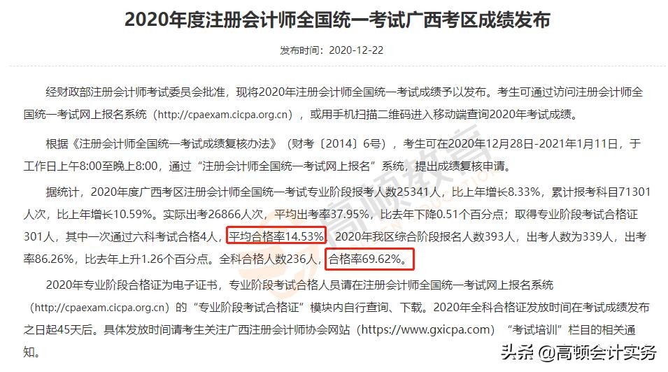 广西考区2020年通过率:专业阶段平均合格率14.53%;综合阶段合格率69.62%!
