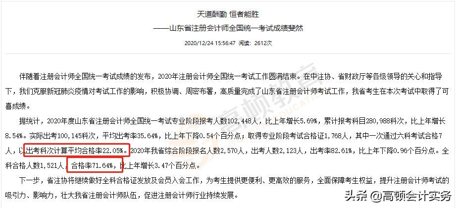 山东省:专业阶段考试平均合格率22.05%,综合阶段全科合格率71.64%。