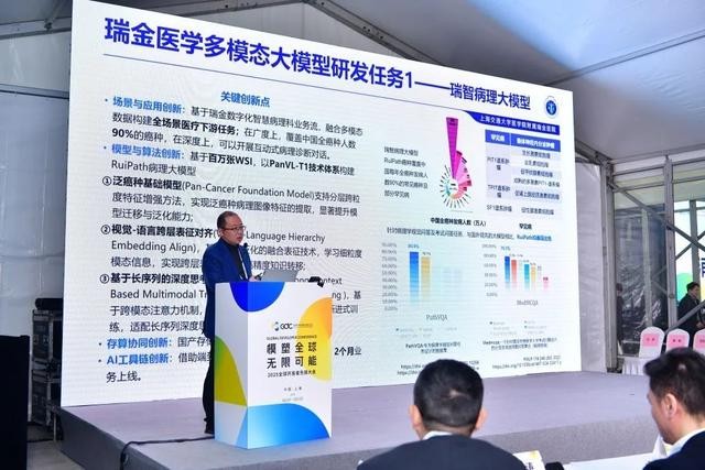 他介绍,一方面,瑞智是一个泛癌种的基础大模型,覆盖中国全癌种人数90%的癌种,并且完成了视觉和语言的跨层表征;此外,它还是一个推理大模型,具备深度思考能力,可以开展互动式病理诊断对话。该模型使用瑞金医院积累的100万张的WSI数字病理切片影像数据,包括对应的报告文本,完成训练。