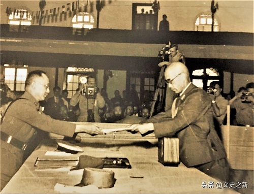 抗战胜利之后,冈村宁次作为在华军队最高指挥官代表日本向中国投降。1945年9月9日上午9点,在南京中央军校大礼堂举行了侵华日军向中国投降签字仪式。日方代表是冈村宁次,中方代表则是著名“亲日派”将领何应钦。在投降仪式上,冈村宁次并未表现得过于惶恐不安,因为他知道自己虽是败军之将,但却仍是有用之人。