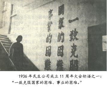 由于民生公司在抗战中伤亡近200人,被炸沉炸伤轮船近百艘,又低价甚至免费运送学生、难童、军人,以至公司严重亏损。1942年4月8日,在民生公司举行的股东大会上,作为公司总经理的卢作孚“讲至公司艰困,为国牺牲,公司员工宁受薄薪,轻生命,为国冒险处”,深感对不起公司的股东和全体职工,竟当场嚎啕大哭起来。在场的著名教育家黄炎培拍案而起,当场泼墨挥毫:“公司亏本,对不起股东,为抗战而亏本,公司对得起国家,即股东对得起国家。没有国家,哪有公司,中华复兴的一日,即我公司复兴的一天!”民生公司的命运是与国家、民族的命运融为一体了。正如1944年一家美国杂志《Asia and Ameriea’s》刊登《卢作孚和他的长江船队》一文中说:“卢先生全部活动的推动力,是为他的祖国和他的同胞服务,而不是为了个人的利益和地位。”