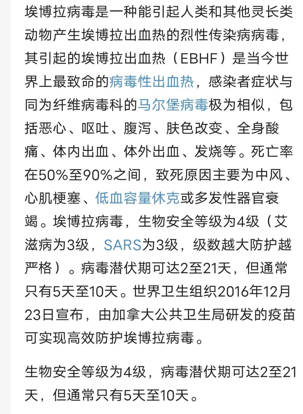 今日随着世卫组织把新冠最新变异病毒设为最高等级的病毒,我们来了解一下同为最高病毒等级的病毒吧…