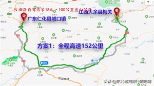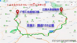 从梅关到城口要穿越整个大庾岭的群山,导航呢共给我提供了三个路线计划,第一个是高速公路,全程的是152公里。