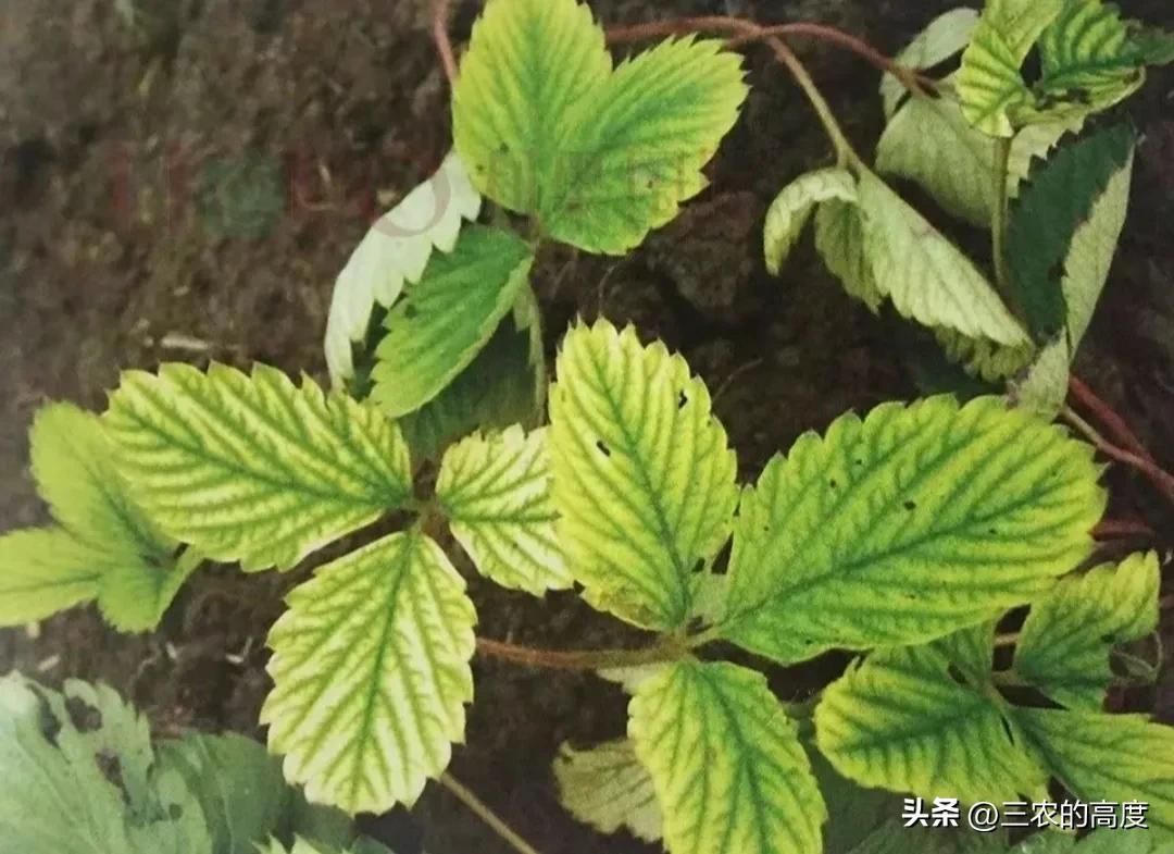 种植草莓的老汉说:“棚室内的草莓,起初嫩叶不绿发黄呈斑驳状,然后转变成叶片黄化加重。