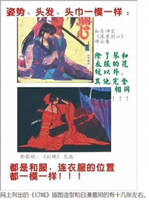 《幻城》除了情节和日漫雷同,小说中的插图也和经典日漫画面类似: