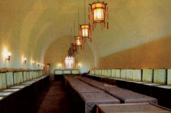皇帝爱折腾,连存放档案文献的柜子也讲究,在皇史宬额正殿里,整整齐齐的排放着150余个外包铜皮雕龙的樟木柜,叫“金柜”,而档案就存在这些“金柜”里。