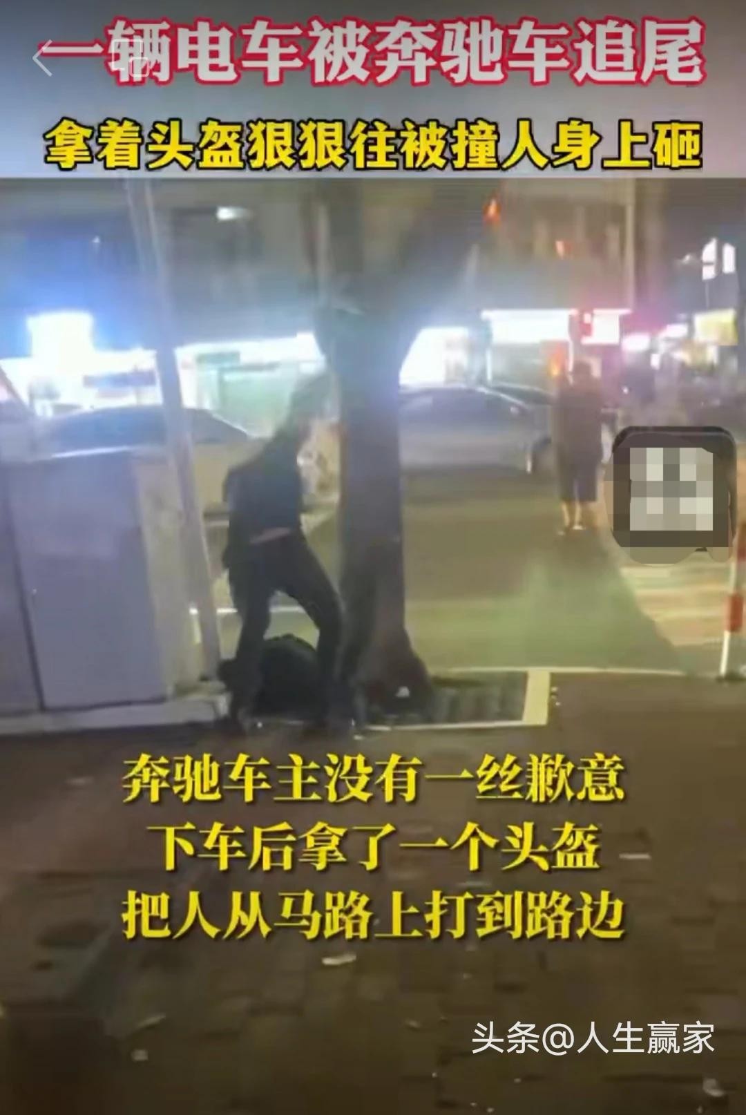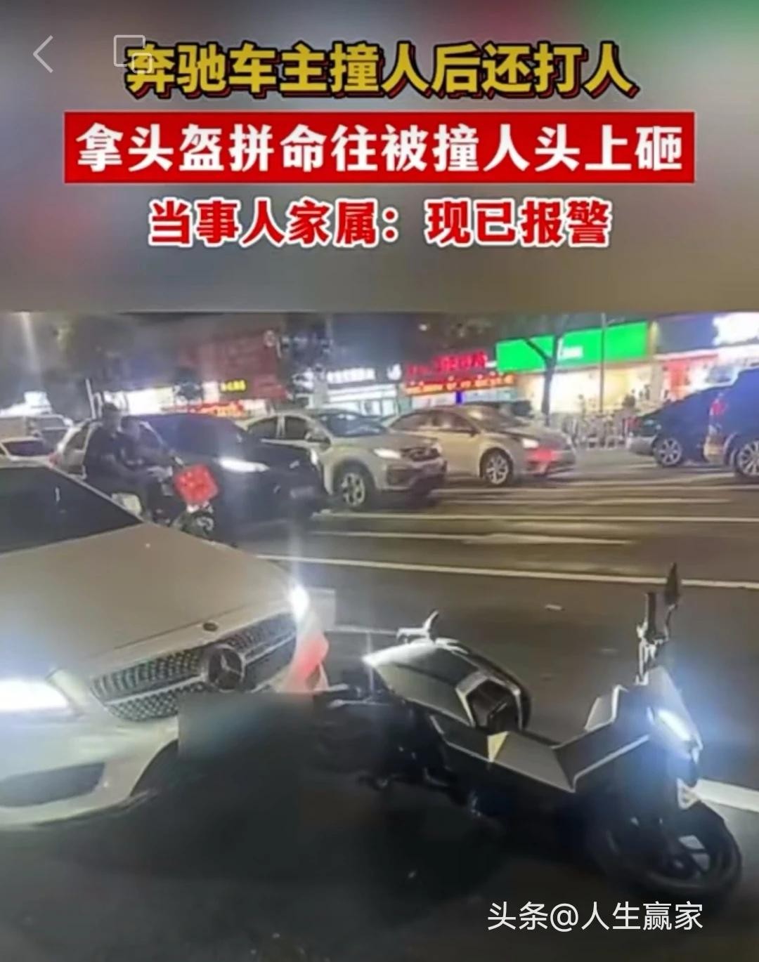太嚣张!奔驰车主撞人后还拿头盔拼命砸被撞人,网友:故意杀人!