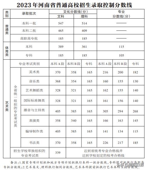 2023年河南普通高校各批次录取控制分数线划定,其中,本科一批文科547分,理科514分;本科二批文科465分,理科409分;高职高专批文科185分,理科185分。今日零时起,可查询成绩;6月26日起,开始填报志愿,考生在填报时,须注意志愿设置类型。