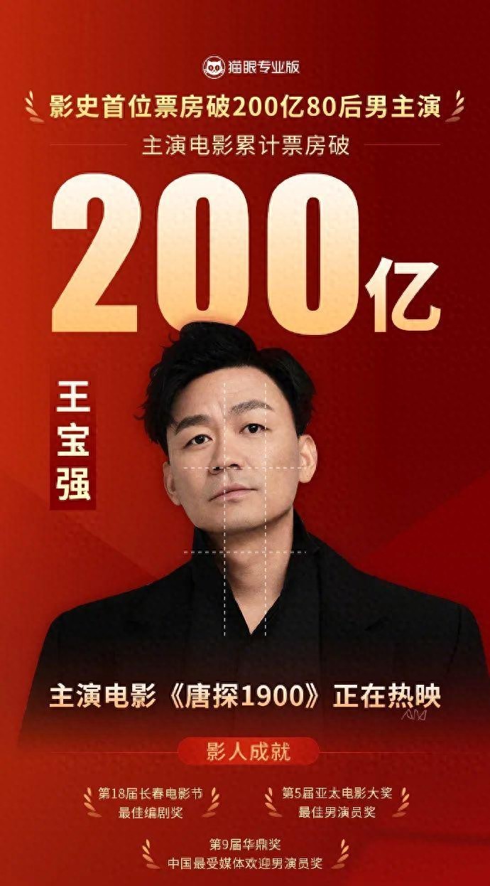 1月30日,根据猫眼专业版,王宝强成为影史首位票房破200亿80后男主演!