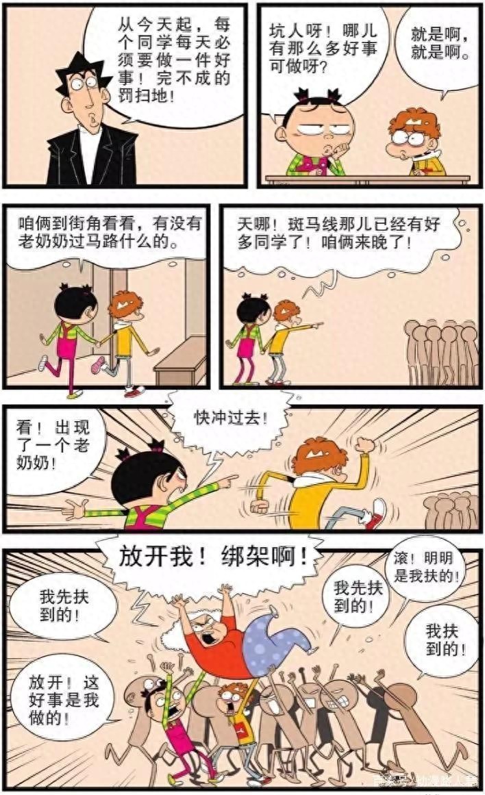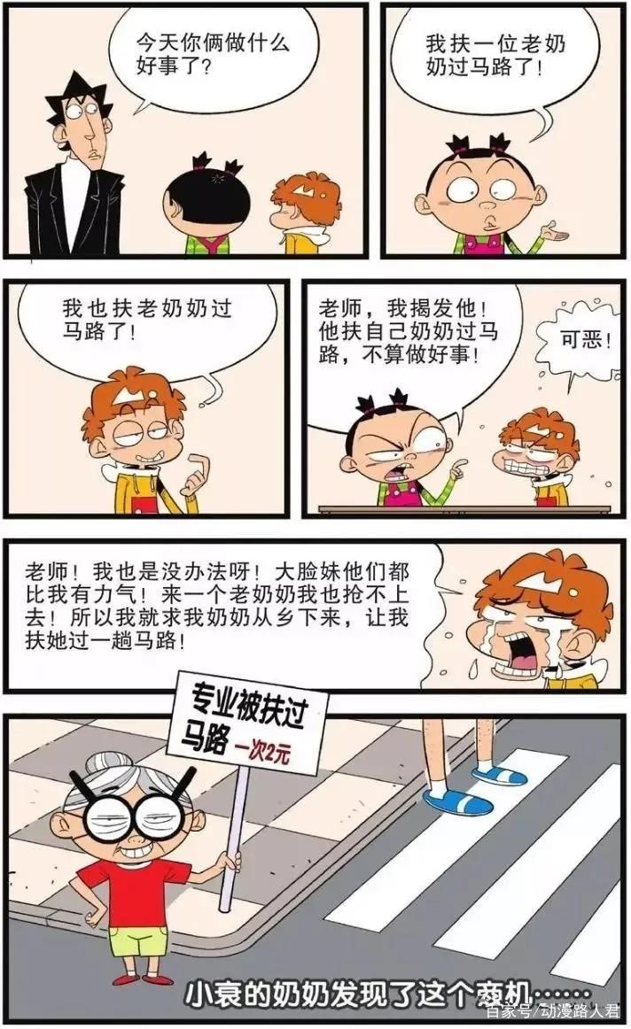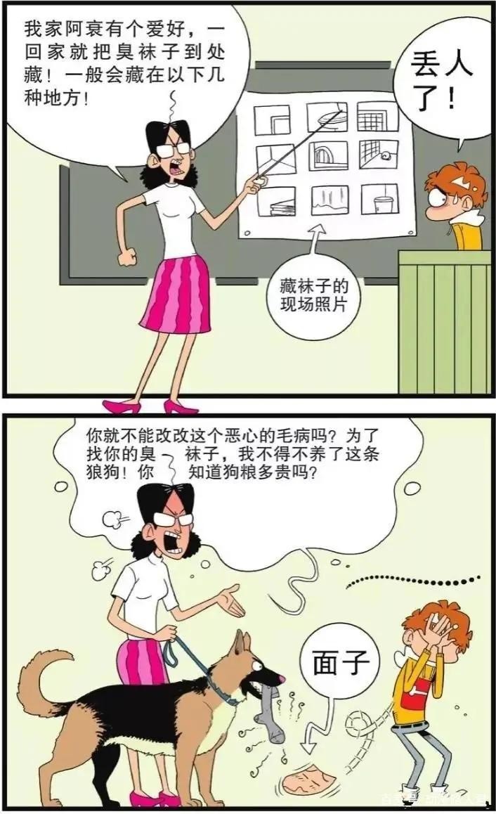 衰漫画:阿衰为了做好事和同学抢老奶奶,衰妈养狗找寻阿衰臭袜子