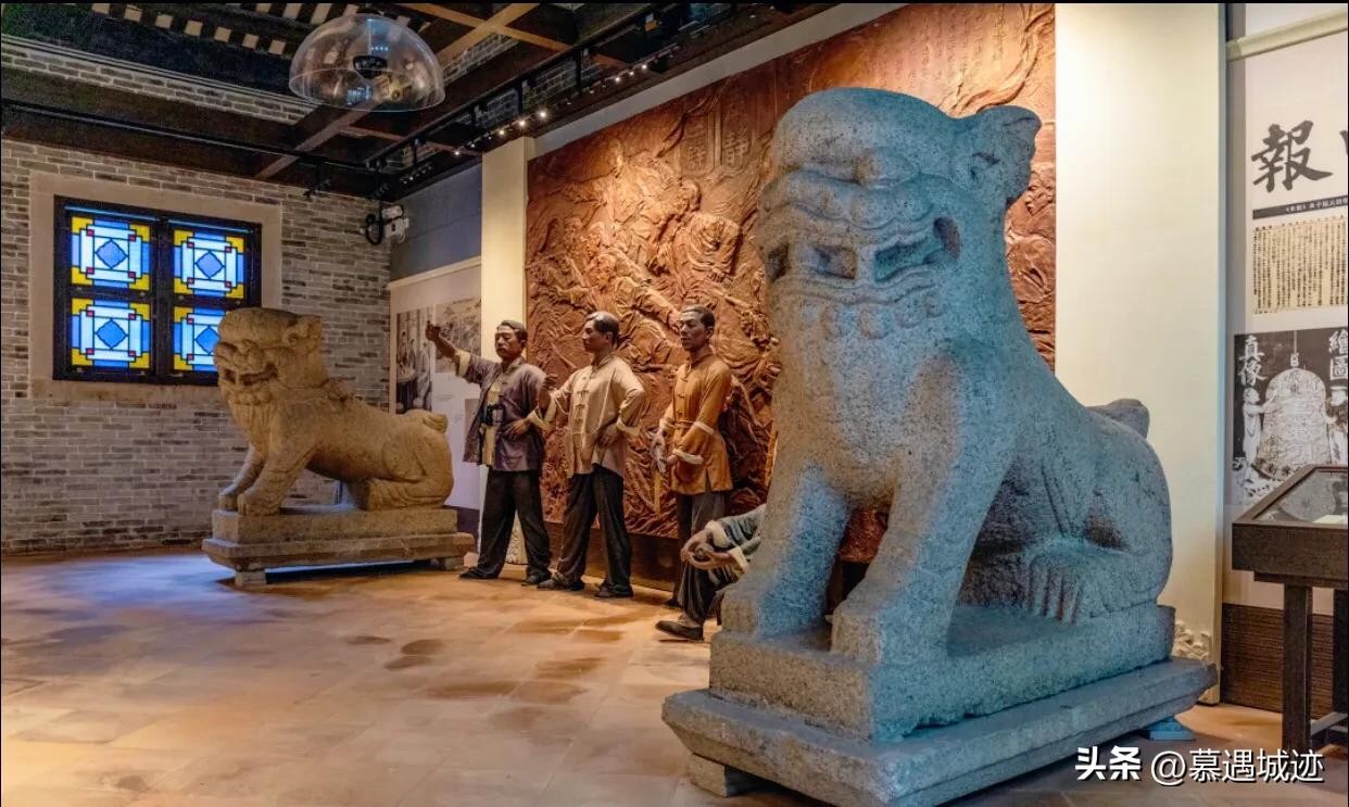 如今,一百多年过去了,大门前的两棵超过百龄树龄的苍天古木黄葛树,依然静静地守望着它的“主人”,而门前的一对石狮子已不是原先的石狮,原先的两只石狮“负伤”后被“请进”了“笼子”里——不远的小东营5号——“三·二九”(黄花岗)起义指挥部旧址里供游人参观,似乎在诉说着先烈们的英勇故事。