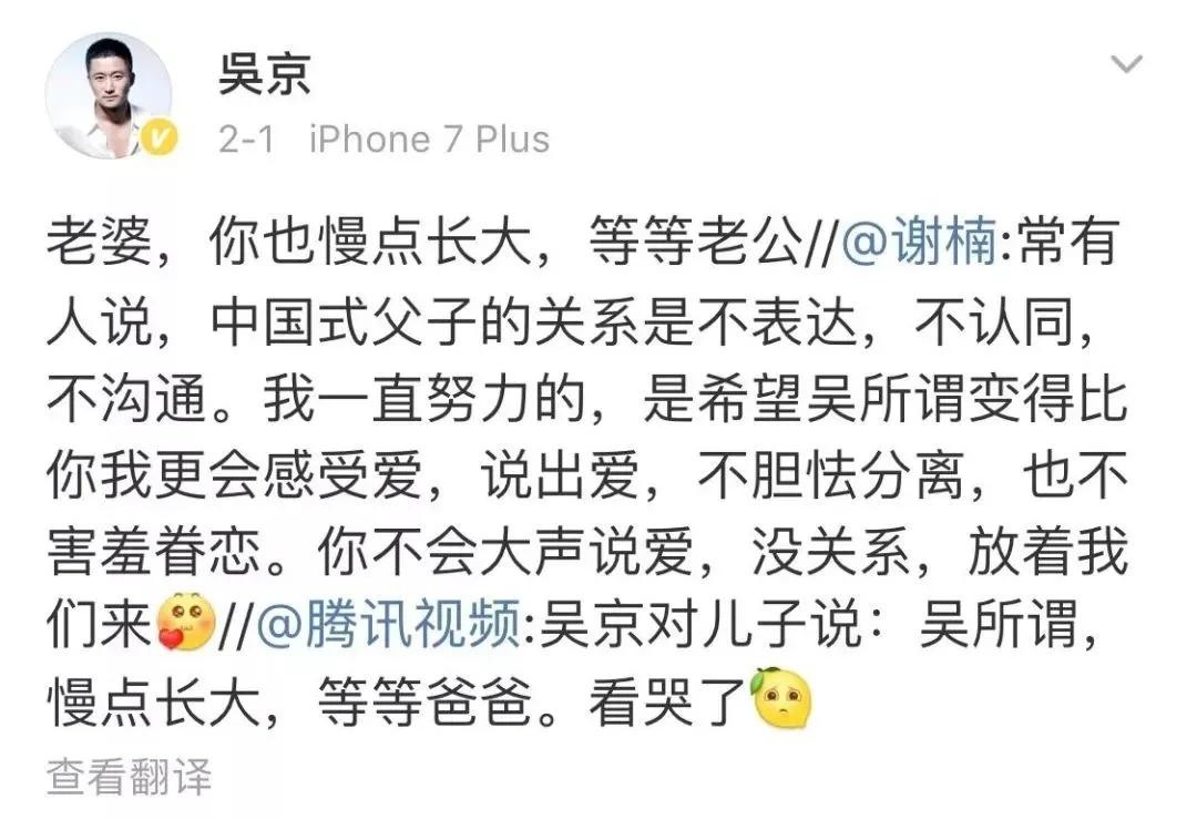 吴京,对儿子,对老婆,则是这样说的: