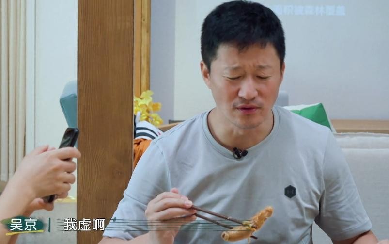 问为什么要吃人参,吴京根本不顾忌旁边还有摄像,脱口而出三个字:我虚啊!