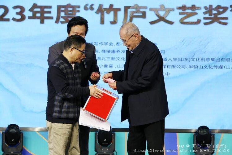 2023年度“竹庐文艺奖”报告文学奖王良杰、杨春杭、魏佑湖 依次领奖。