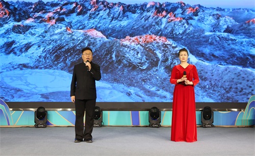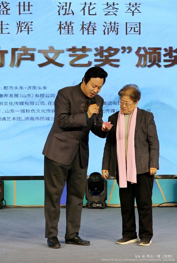 随后,山东省老干部朗诵艺术团袁成志、刘小羽倾情朗诵了终身荣誉奖获得者桑恒昌的《攥着我的半个祖国变奏曲》。