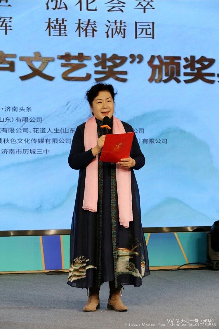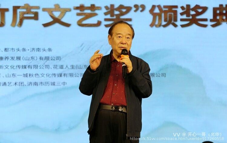 山东省写作学会会长、山东师范大学文学院原副院长韩品玉教授首先代表主办方致辞:今天上午,我就是来槿椿颐养中心参加一场幸福活动来着,我的这一幸福是搭载在各位获奖者幸福的大篷车上的。用一句歌词来表达的话就是——一幸福着你的幸福。