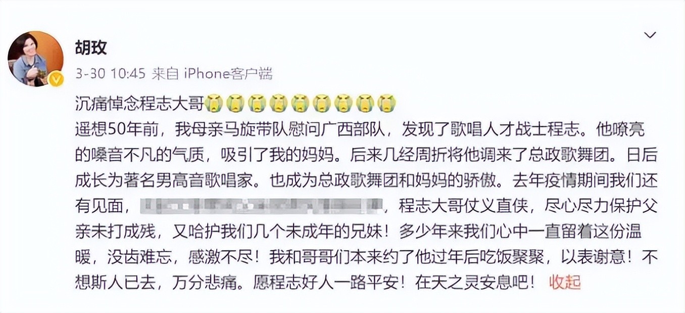 2023年3月29日,著名军演家程志因直肠癌恶化而不幸离世,享年77岁。