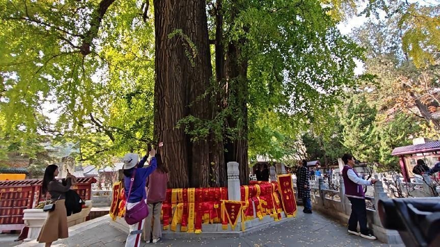 除了青黄铜大锅与石鱼,潭柘寺还保存着诸如千年“帝王树”、公主“拜砖”像等众多珍贵文化遗产。帝王树作为潭柘寺的一大自然奇观,传说中有着千年的历史,它不仅见证了潭柘寺悠久的历史,也是寺庙自然景观中的一大亮点。
