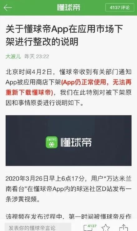 昨天,懂球帝App突然收到有关部门告知,现已被应用商店下架!