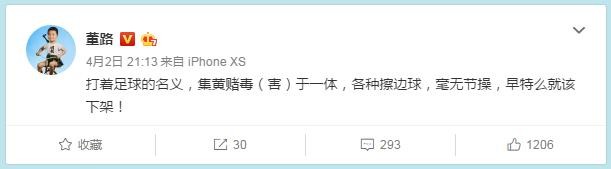 对于这事儿,知名足球解说员董路也在社交平台上直接怒喷:“打着足球的名义,集黄赌毒(害)于一体,各种擦边球,毫无节操,早特么就该下架!”