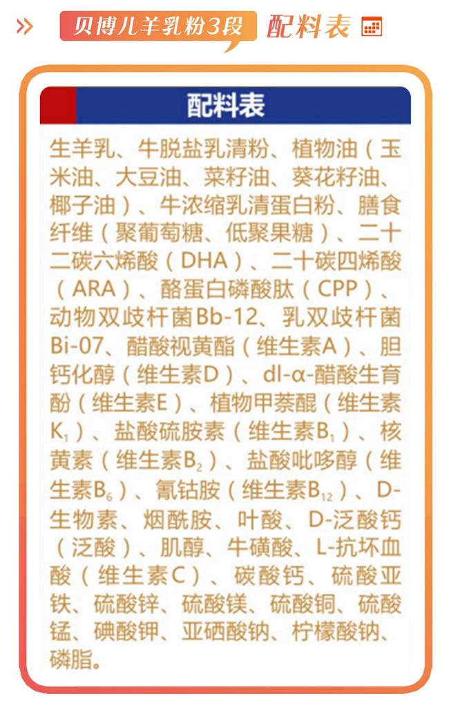 至于特色强化配方,贝博儿羊乳粉添加了CPP和益生菌,CPP有助于钙、铁、锌等二价矿物质的吸收;贝博儿全段均添加了动物双歧杆菌Bb-12、乳双歧杆菌HN019,益生菌在一定程度上有助于改善宝宝肠内微生态的平衡有利于肠道健康。