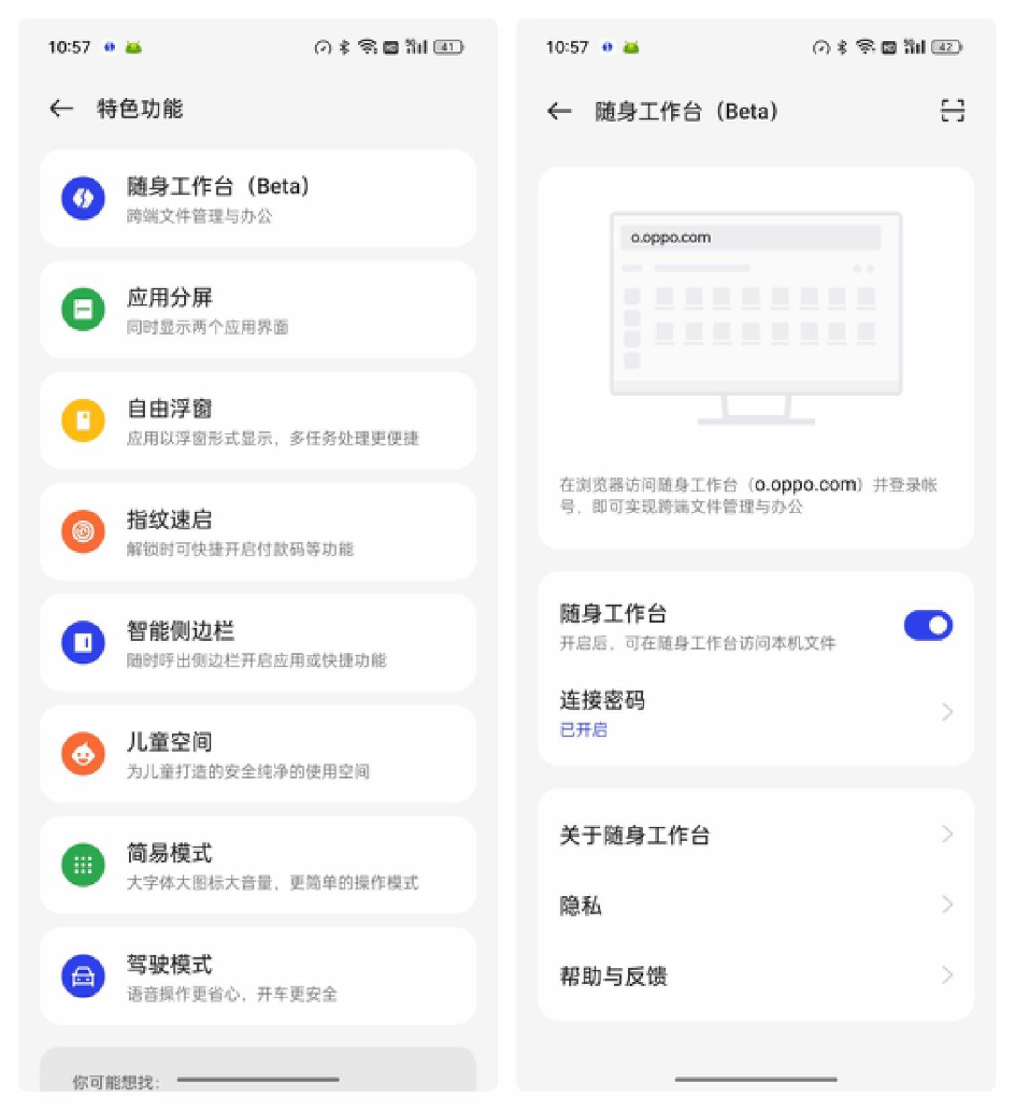 此外,这一次 OPPO Find X6 系列还加入了一项“随身工作台”功能,这是 OPPO 搭载的全新跨端文件管理与平板平台,目前还是 Beta 版本,OPPO Find X6 系列和 OPPO Pad2 平板都内置了该功能。